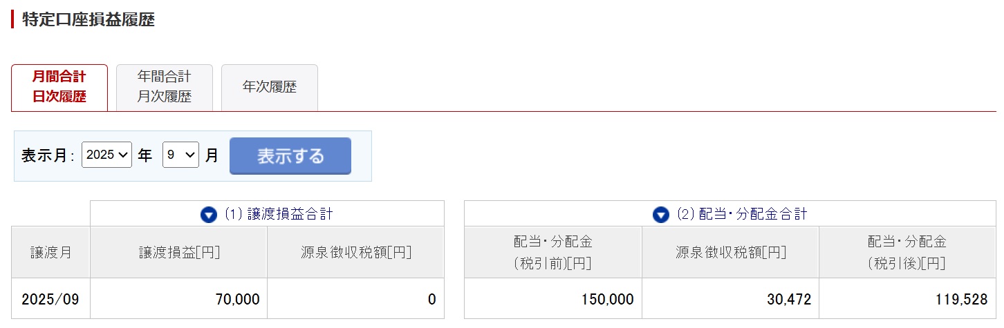 譲渡損益が少しだけ発生しているのは、保有銘柄の一部を利確した分のプラスとなります。